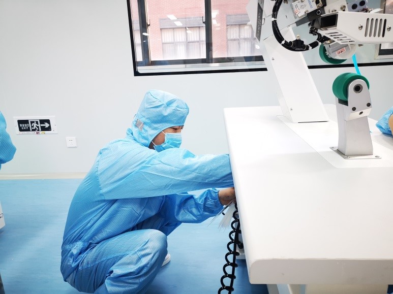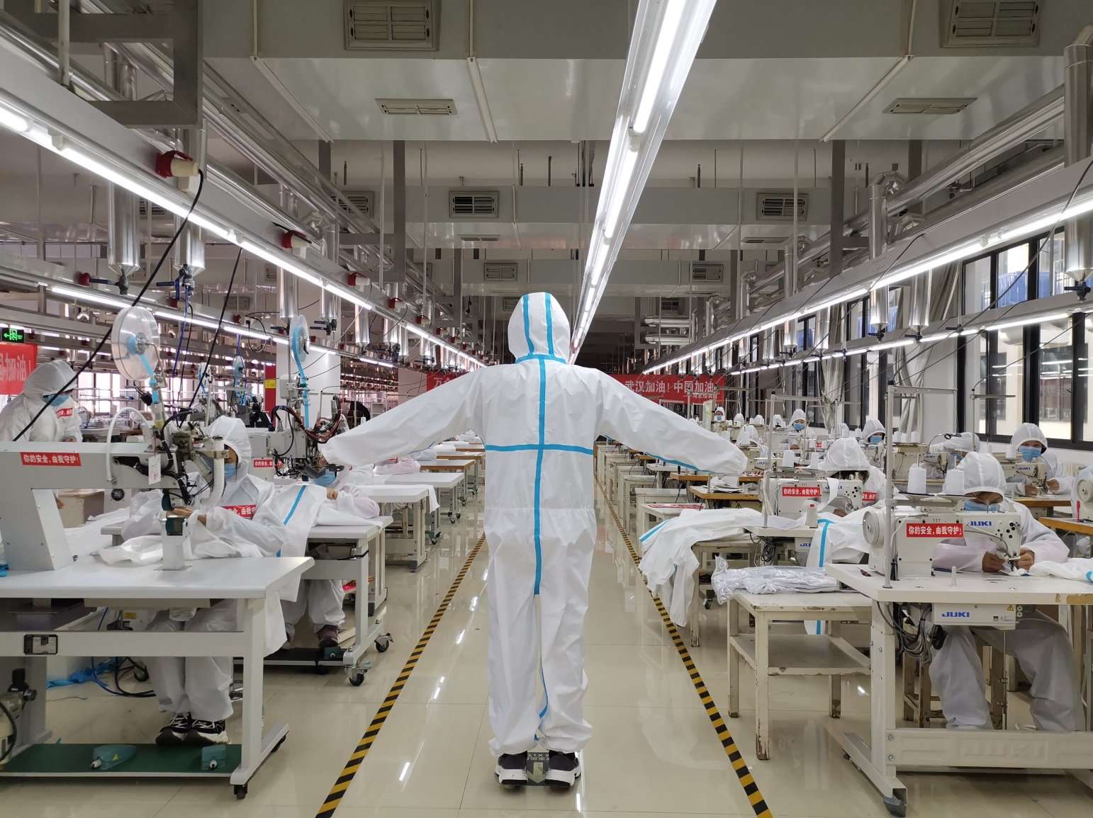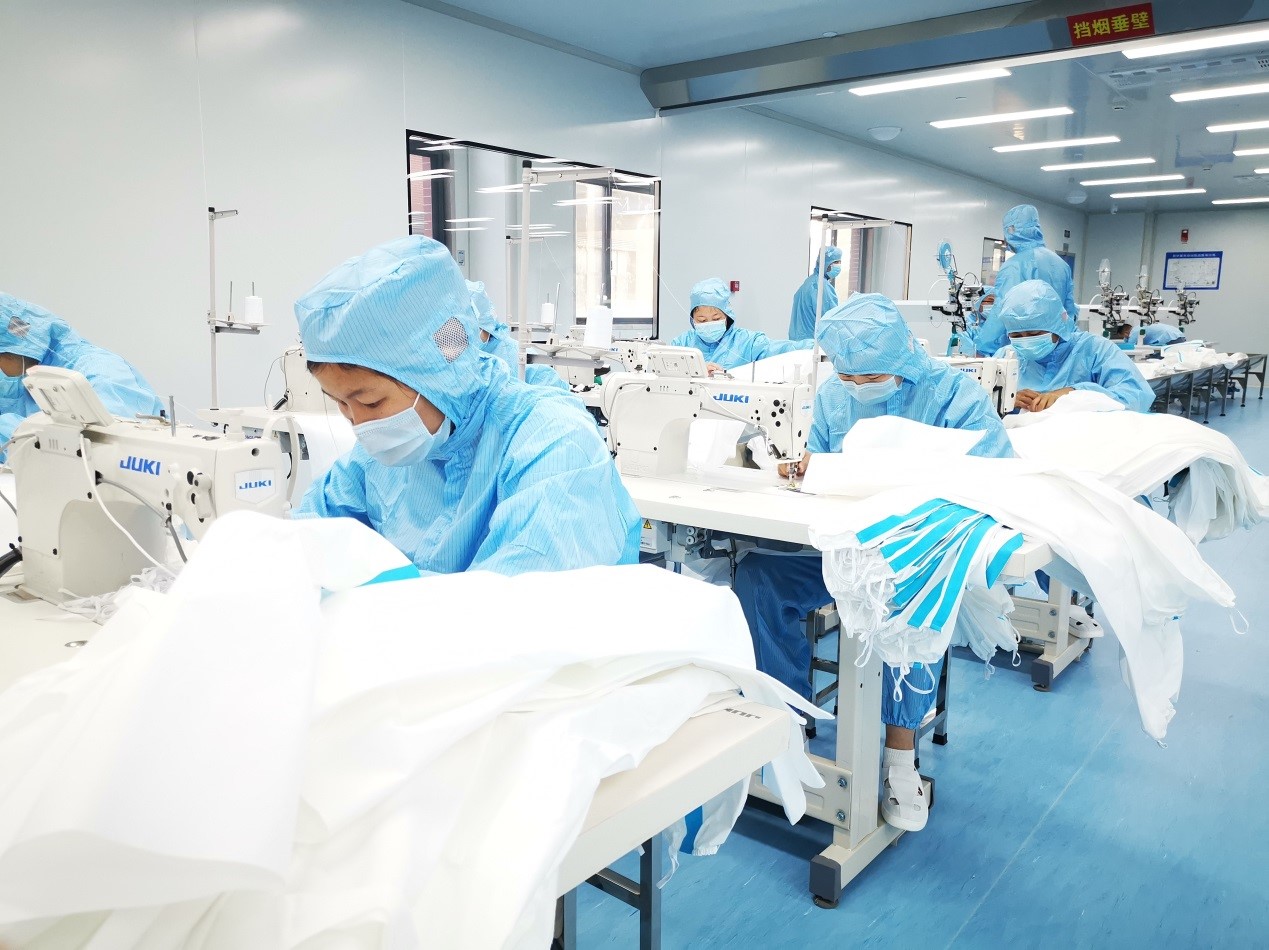 2020年7月7日,1200平10萬級潔凈車間開放投產。當天早上6:00,第一臺用于防護服生產機器進入無菌車間,經過基礎調試后,車間開始了緊張的生產,12分鐘后,第一件防護服正式下線。