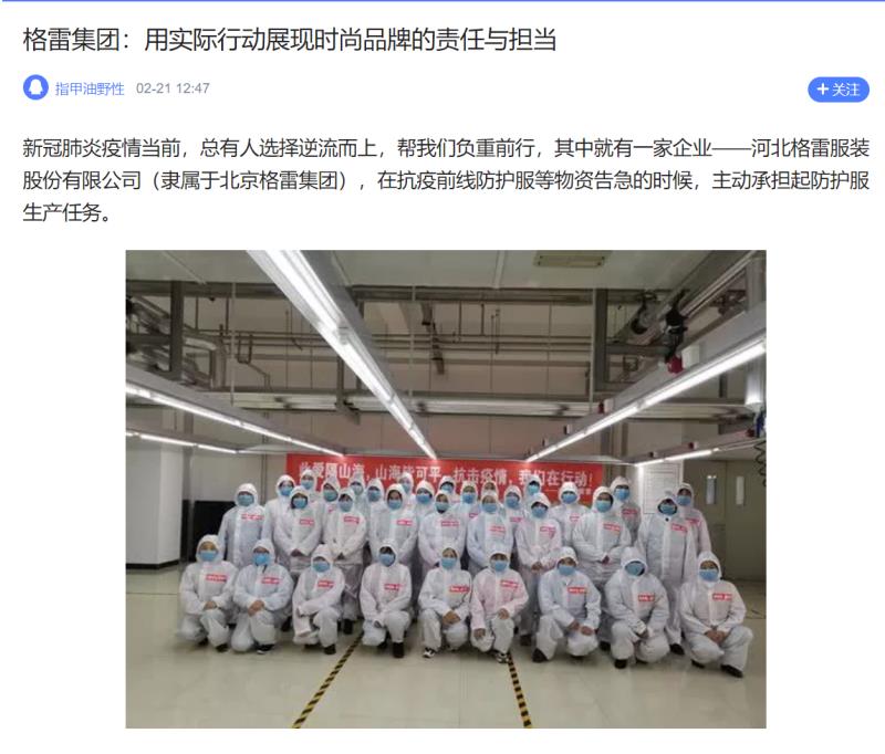 十萬級潔凈車間的建成對于河北格雷來說是具有跨越式意義的一大步,從2月初疫情爆發時期的臨危援命、快速轉產到如今的十萬級無菌車間的建成投產,從之前的隔離衣、手術衣到現在的無菌防護服,河北格雷一直在與時間賽跑,力求以最快速度承擔更多責任,不負各界信任與托付。